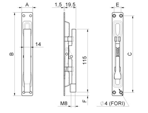 - CATENACCIO PALETTO UNA AZIONE con LEVA per CHIUSURA SERRAMENTI COMBIARIALDO 222
