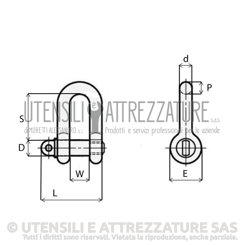 | Codice Articolo | PORTATA KG (5/1) | W mm | D mm | d mm | E mm | P mm | S mm | L mm |